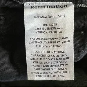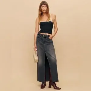 Reformation Tazz Maxi Denim Slit Front Skirt in Liman Wash Size 24