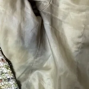 Pre-owned in good condition. Light discoloration on lining. No size tag, fits like small. See photos. Price adjusted due to flaw. Color may vary slightly due to lighting.