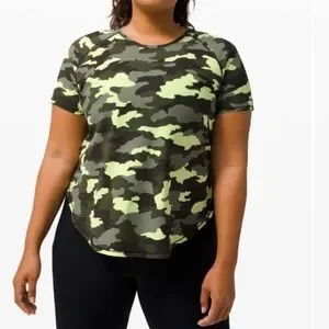 Lululemon UVP Run Short SleeveHeritage 365 Camo Crispin Green Multi size 12/14?