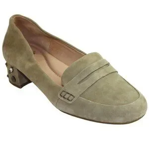 UGG Elise loafers, UGG penny loafers, khaki suede loafers, taupe suede shoes, studded heel loafers, block heel loafers, boho loafers, boho chic shoes, leather penny loafers, womens designer loafers, comfort loafers women, slip on loafers, casual dress loafers, transitional shoes women, UGG womens shoes