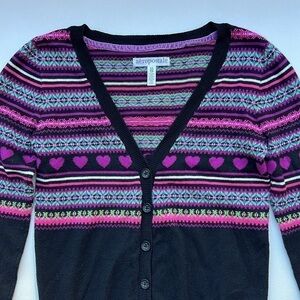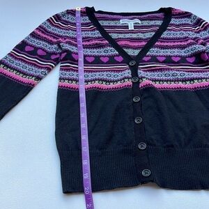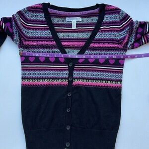 Aeropostale cute Pink/purple heart Striped Cardigan Sweater essential layer xs