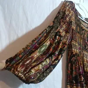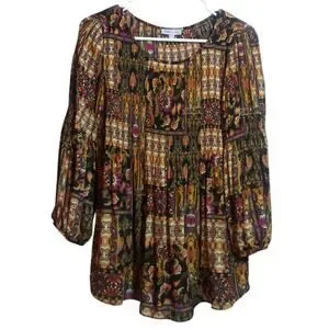 Floral & Ivy 3/4 Sleeve Paisley Blouse Bohemian Retro Multicolor Size M