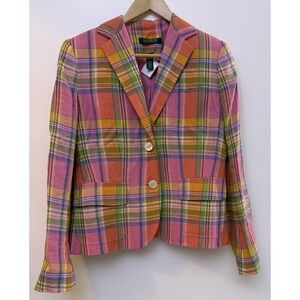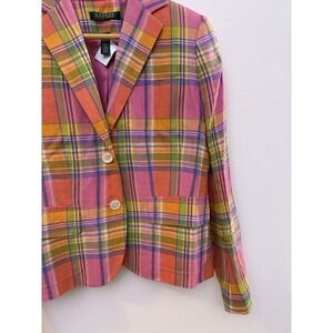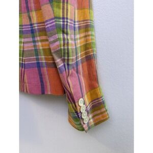Lauren Ralph Lauren Blazer Women's 6 Multicolor Plaid 100% Linen Lined Pockets