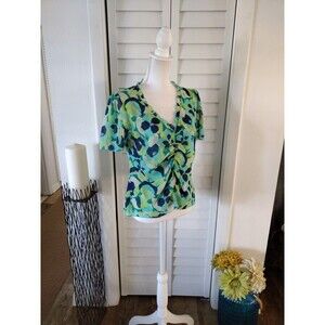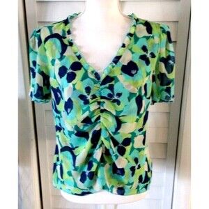 CAbi Trixi Top short sleeve zip side closure v-neck shirring lined S