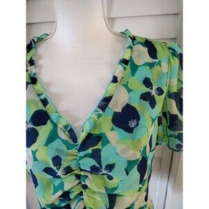 The enchanting flower swirl print of the Trixie Top is reminiscent of 60s go-go patterns, letting you explore yet another decade of the Vintage Point trend. This fitted top has a side seam zipper for easy entry along with both ruffle and shirring details throughout for a feminine flair. Flower Swirl Hits at the low waist, V-neckline, shirring at the center seam, fully lined with sheer sleeves Double-layered poly chiffon. EUC no known defects.