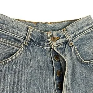 These jeans have a classic high-rise, tapered-leg “mom jean” fit that’s flattering and timeless. Made from 100% cotton denim, they have a structured vintage feel with no stretch. Button fly closure adds to the authentic 90s style.