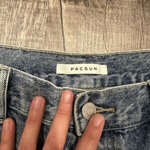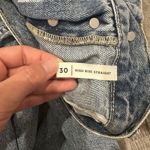 Pacsun Women High Rise Straight Blue Denim Jeans Size 30 Light Wash Buttons. excellent used condition. has a stain in front of the jeans. 100% cotton. buttons to close instead of zipper.
