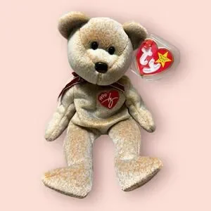 • Beige bear with maroon ribbon & heart patch