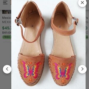 MEXICAN HUARACHES LEATHER BUTTERFLY EMBROIDERED ANKLE STRAP SIZE 8