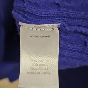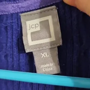 Jcpenny Purple cable knit v neck sweater. In EUC. 60% Cotton and 40% nylon. Pit to pit is 21 and length is 25.5 inches.