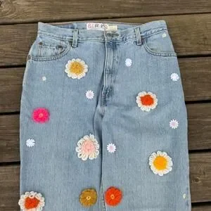 Vintage Denim New York City Boutique Designer Rework Crocoite Flowers Cute Fall Winter Streetwear Rare Retro Classic upcycled denim handmade rework artisan jeans relaxed fit high waisted mom style 90s inspired retro denim statement jeans sustainable fashion unique rare collectible streetwear indie grunge y2k fashion slow fashion preloved thrifted depop find custom denim floral jeans reworked Levi's mom fit jeans