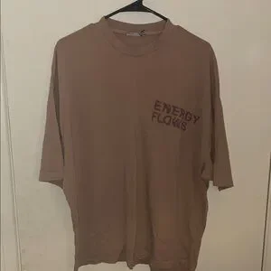 Relaxed oversized fit graphic tee with "Energy Flows" chest print and back print. Soft mauve fabric. Casual everyday style from ASOS Designs