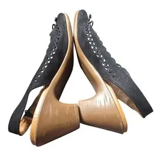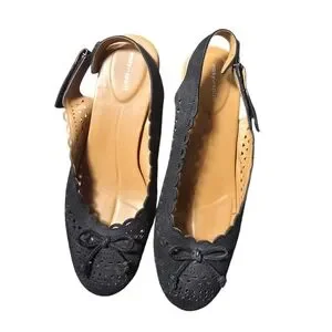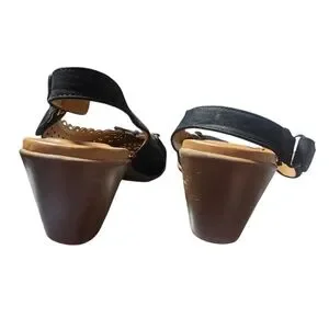 Easy Spirit Size 9.5 Scalloped Edge Black Wedge Sandals - Scuffed Heels No Box