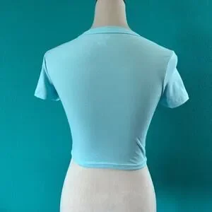 Wild Fable Women's Blue Crew Neck Short Sleeve T-Shirt Cropped Top Size XS