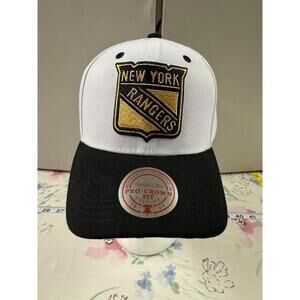 The New York Rangers Mitchell & Ness Snapback Hat in Black, White, and Gold is a stylish accessory for any hockey fan. Featuring the iconic NHL team's logo, this hat is perfect for showing your support for the New York Rangers. The snapback design ensures a comfortable fit, while the classic color combination adds a touch of team spirit to any outfit. Represent your favorite team in style with this officially licensed Mitchell & Ness snapback hat.