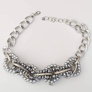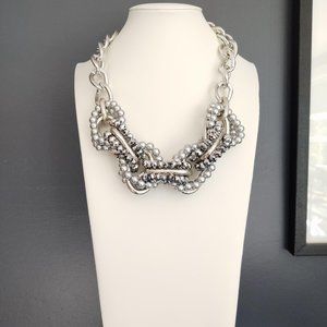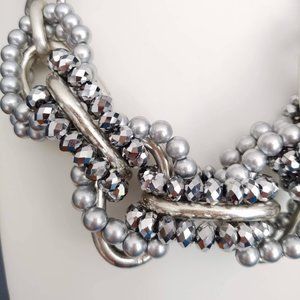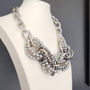 Dramatic silver link and beaded necklace