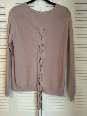 Blush Pink Lululemon Knit Sweater Tie Detail Long Sleeve Athleisure Top