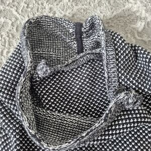Intricate Birdseye Knit — Features a textured, multi-tonal black and white knit pattern for a sophisticated look.