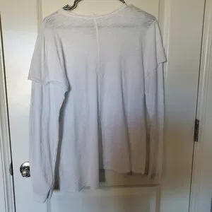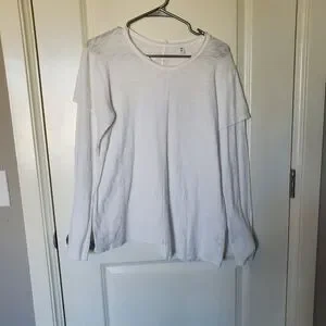 Womens Long Sleeve Slub Knit T-shirt Top Scoopneck White S