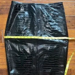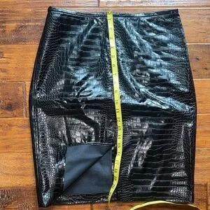 * This modern take on the classic pencil skirt comes with a slit at the front for ease of movement and a zip at the back for a clean look. Plus, it's crafted from faux leather with a touch of sheen and a croc-embossed finish.