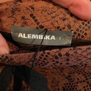 ALEMBIKA pant. Cotton/Poly/Elastane. Alembika size 1 which is S/M. Waist is 15” across and cinches smaller. Length is 39”. Size 2 is waist 16” across. Length 40”.