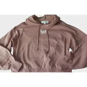 Hippie Rose Juniors Cropped Graphic Hoodie Size Small Mauve NWT Butterfly