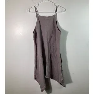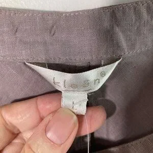 Womens Kleen Flaxseed Linen Asymmetrical Top Applique Flower L Brown NWT