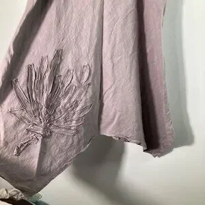 • Lagenlook Asymmetrical Top applique flower linen Flaxseed