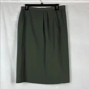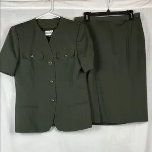 Vintage Kasper for ASL Dark Olive Green Military Style Women's Skirt Suit