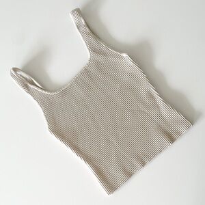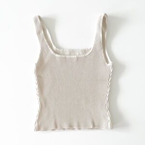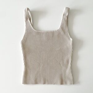 An Everyday Luxury essential loved for its universally flattering fit, this is a fittedmtank with a double square neckline and fully fashioned construction. It’s made with Sculpt Knit — our signature figure-enhancing yarn. This compressive, all-season fabric holds you in all the right places to shape and sculpt your form. Like nothing else. This version is constructed using an Ottoman stitch with close distinct ribs for a structured and textural feel.
