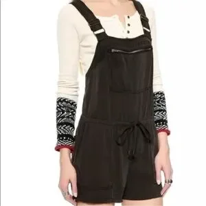 Free People Black Basically Backless Shortall Overalls Shorts XS rare