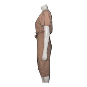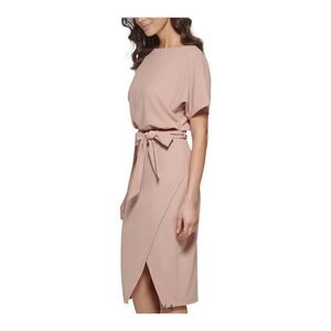 Kensie Womens Tan Tie Front Blouson Wrap Dress Belted Short Sleeves 10 NWT