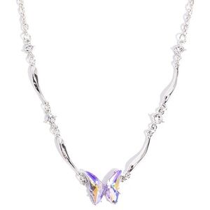 NWT Paparazzi necklace w/ silver cable chain, white rhinestones & curly silver bars to a purple UV-shimmery butterfly. Adjustable clasp closure. Fishhook earrings. Hypoallergenic, lead & nickel free. Light weight. Last One!