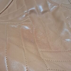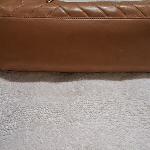 Tory Burch caramel color tote with quilted design. Features chain handles. Perfect for daily use.