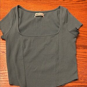 Urban Outfitters Ribbed Square Neck Tee - Dark Green