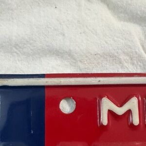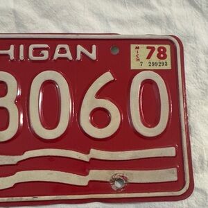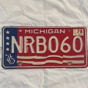 Vintage Authentic 1976 Michigan metal license plate in patriotic red, white and blue. Bold raised lettering and embossed details. Great for wall display or decor. Good condition for its age.