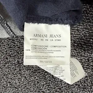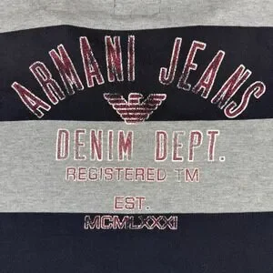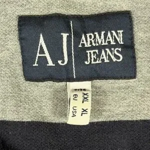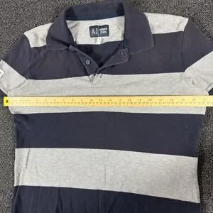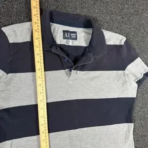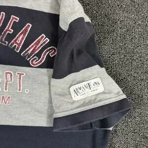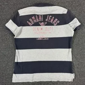 Armani Jeans Mens XL Polo Shirt Navy Blue Grey Striped Big Spellout Graphic Y2K