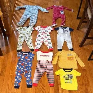 Bundle of 4 short sleeve + 3 long sleeve + 2 onesie pajamas for 18 month old boy - 14 total pieces. Lightweight and breathable for comfortable sleep.
