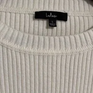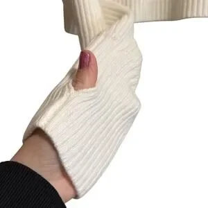 Lulus Womens Ivory White Ribbed Knit Cropped Sweater Thumbhole Cuffs Large