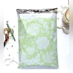 Polymailers with a green and white floral design