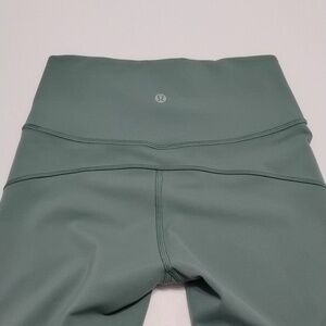 This article worn several times. frosted pine in color. everlux fabric. lightweight. highrise. hidden pocket.