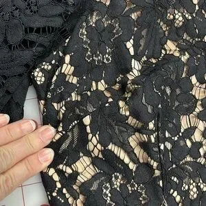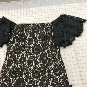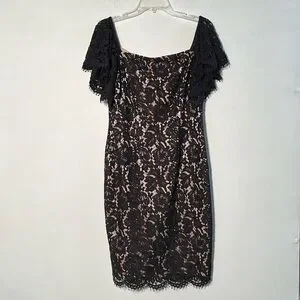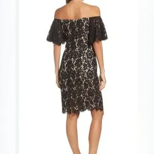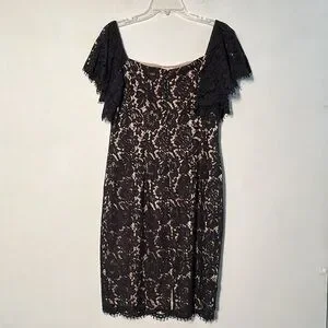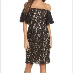 ELIZA J Cocktail/Wedding Floral Black Lace Off Shoulder Flutter SLV Sheath 10