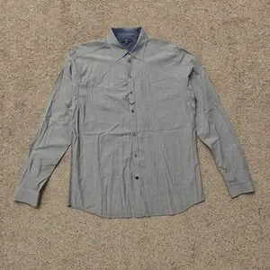 Diesel Mens XXL Gray Micro Dobby Cotton Long Sleeve Button Down Shirt Logo