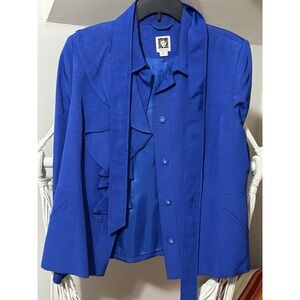 NEW Anne Klein Women's Blue Tweed Jacket Lined Size XL Open Front Blazer