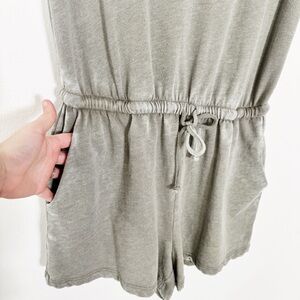 Lulus soft-textured sleeveless tank romper with a relaxed V-neck. Subtle seam and notch detail at center front. Lightweight, casual layering piece. Size medium.