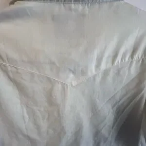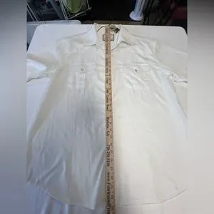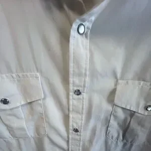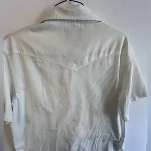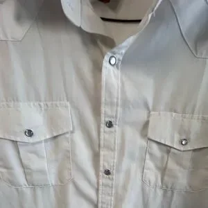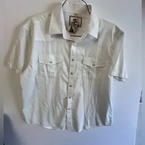 Elevate your wardrobe with this white short sleeve shirt. Perfect for any occasion. Has pearl snaps, two front pockets. Nice shirt