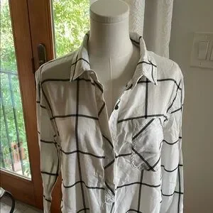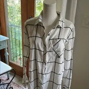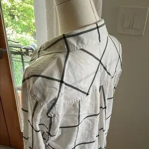 Athleta Presidio White and Black Checkered Button-Up Shirt Tunic EUC