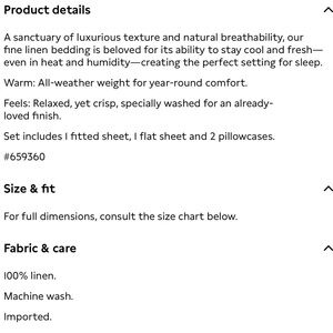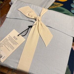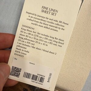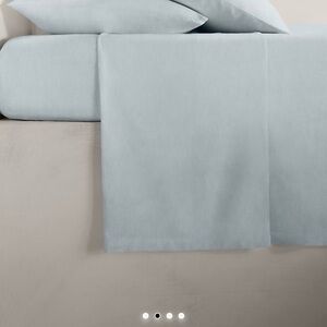 Soft light blue 100% European linen sheet set . Simple, elegant bedding staple. Perfect neutral addition to any bedroom. Set includes 1 fitted, 1 flat, 2 king cases, and 2 bonus standard cases. Color is Sky Blue from BR website.