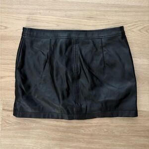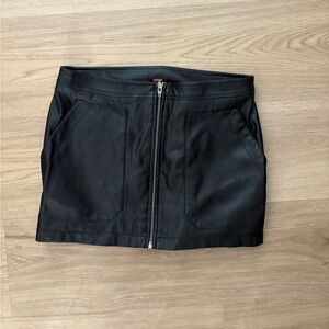 Sleek and so classic, this mini skirt is featured in a smooth vegan leather fabrication with zip-up front closure and oversized seamed pockets for added dimension.