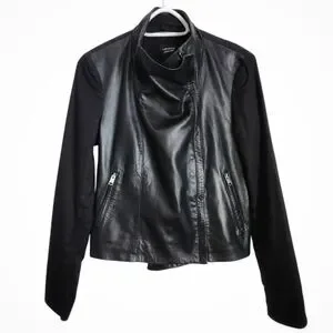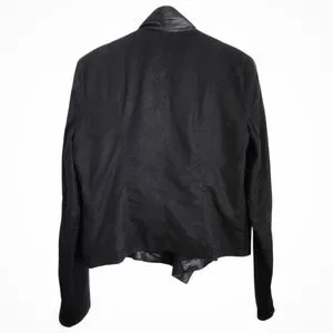 Lamarque Black Leather and Linen Jacket Draped Moto